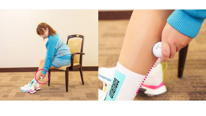ゴルフボールをふくらはぎの上でコロコロ転がしましょう