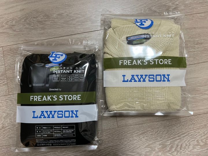 コンビニで服を買うというと、ファミマのコンビニエンスウェアが思い浮かびますが、ローソンでもアパレルグッズの販売がスタートしました。全国に50店舗以上を展開するFREAK’S STOREとコラボした「LAWSON FREAK」、その第1弾商品の「インスタントニット」を購入しました!