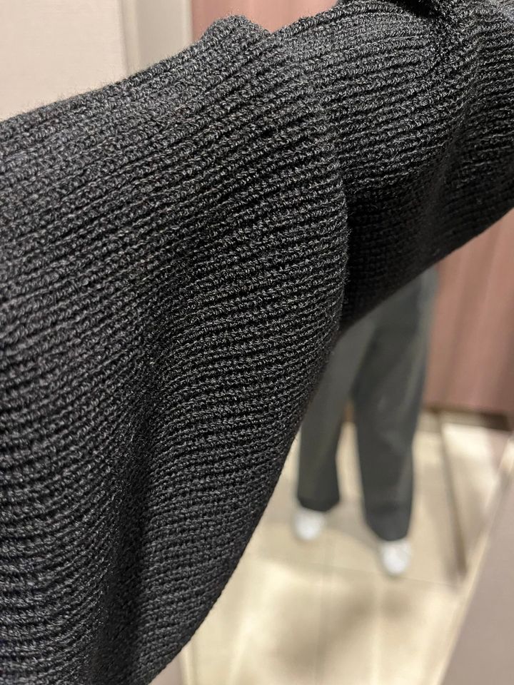 畔編みニットで素材がポリエステル70%、アクリル30%です。薄手でやや粗めのリブ、わたしの購入したベージュカラーだと濃色インナーが透けて見えるくらい。化繊ニットのため肌ざわりはややざらっとします。個人的にはロンTインナーは必須だと思いました。薄手ニットなので寒がりのわたしはもう少し春に近づいてから活用予定です。