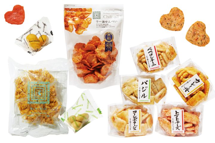 「軽くてサクサクのおかきシリーズは、両国の老舗『東あられ本鋪』のおかきを使っていて、おかき自体がそもそも美味。どの味も洋風で珍しいけど、特にやや軽やかな歯ざわりのバジルとコーンポタージュの食感が好み!」(編集K)