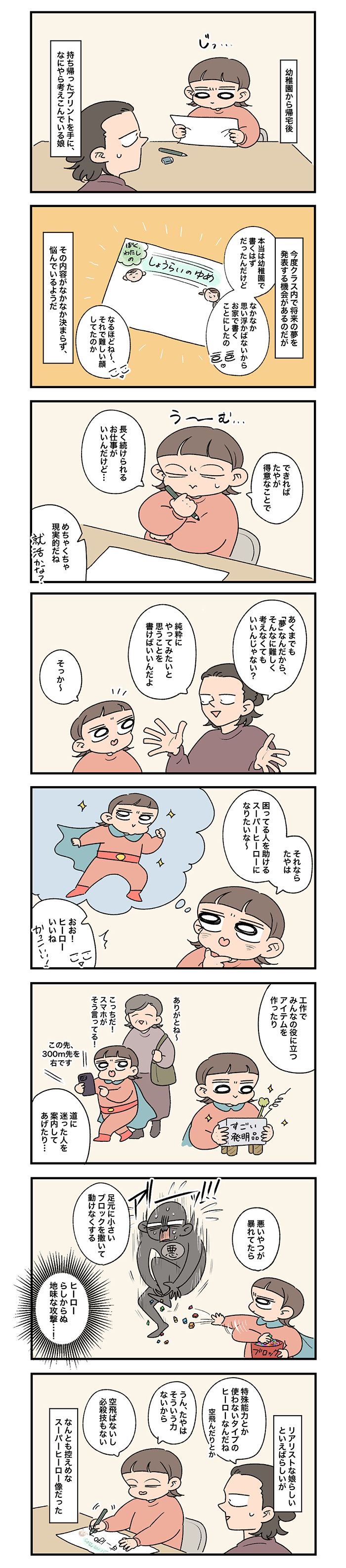 夢はスーパーヒーロー。でも、悪いやつらへの攻撃が地味すぎる…【今日のたやちゃん・79】