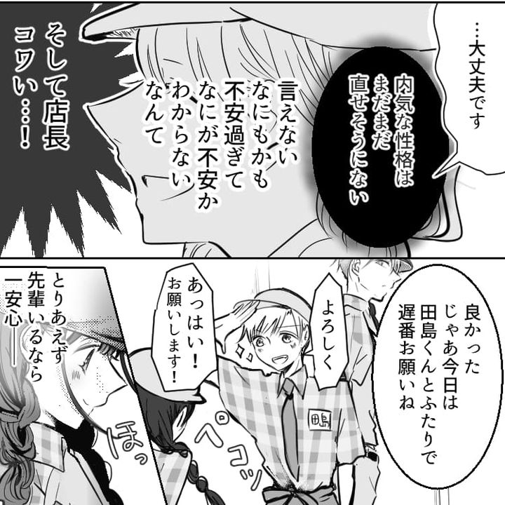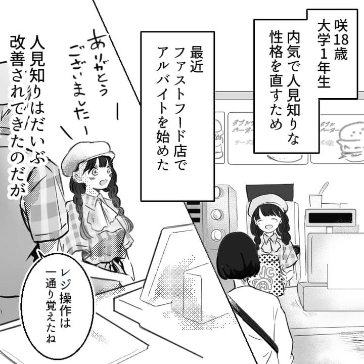 主人公は人見知りを直すために、ファストフード店でアルバイトを始めました。