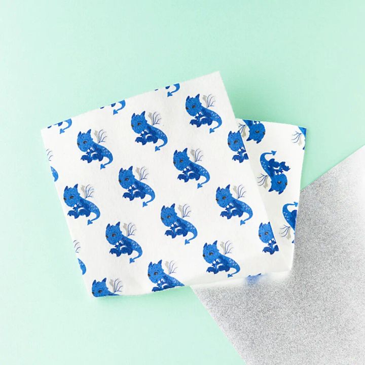 使い捨てのランチョンマット感覚で使えるキッチンクロスに、ドラゴン柄が登場! お皿がシンプルでも、さっと敷くだけで、テーブルが華やかに盛り上がるので、ホームパーティにおすすめです。