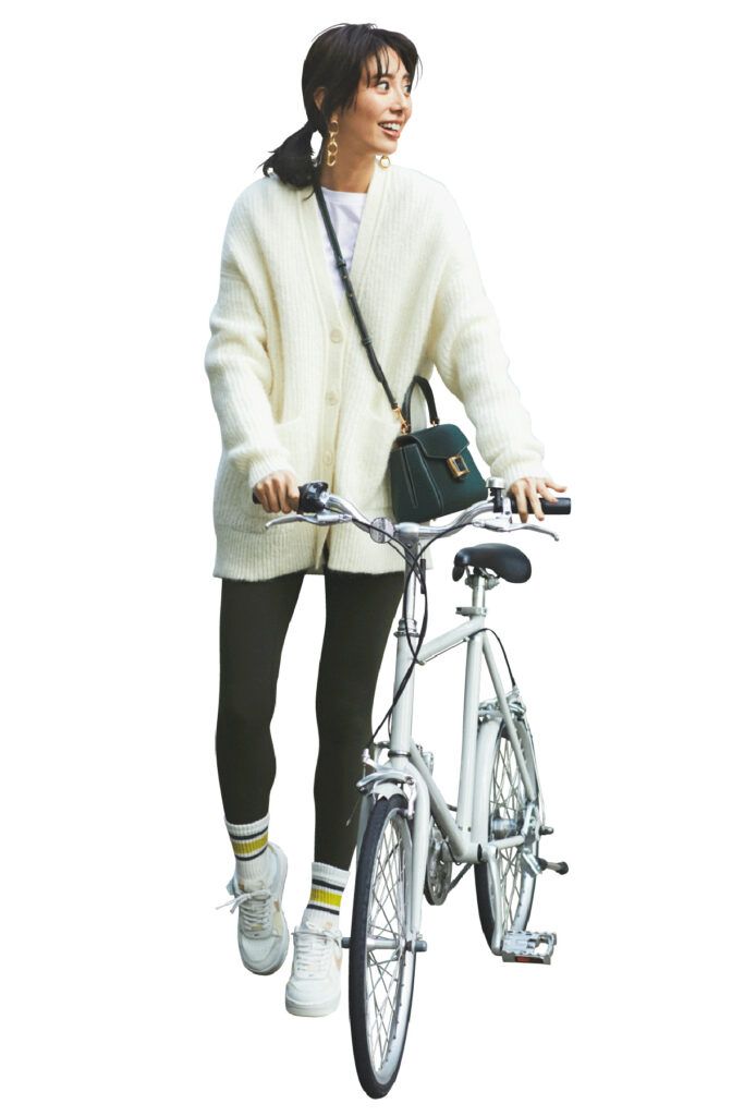 カーキレギンスとイエローのライン入 りソックスで海外セレブ風カジュアル に。ラフになりすぎないよう、キレイ め顔のスニーカーでクリーンに仕上げ て。ラインソックス¥2,750(ユクリ/ TTIME)スニーカー¥18,150(NIKE SPORTSWEAR/NIKEカスタマー サービス)ニットカーディガン¥16,9 40(Mila Owen/Mila Owen ルミネ 新宿2 店)Tシャツ¥11,550(スローン /ザ ショップ スローン 新静岡セノバ 店)レギンス¥12,800(lululemon)バ ッグ¥61,600(ケイト・スペード ニュ ーヨーク/ケイト・スペード カスタマ ーサービス)ピアス¥18,360(アビステ)