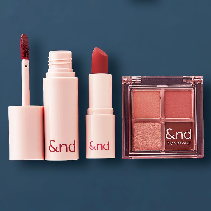 (左から)ジューシーで立体的な唇に。グラッシーボムティント BR03 ¥780 シアーな光沢感を演出。グラッシーバーム PK01 ¥880 高い密着力と発色。メロウアイパレット PK01 ¥1,350 (すべて韓国高麗人參社)