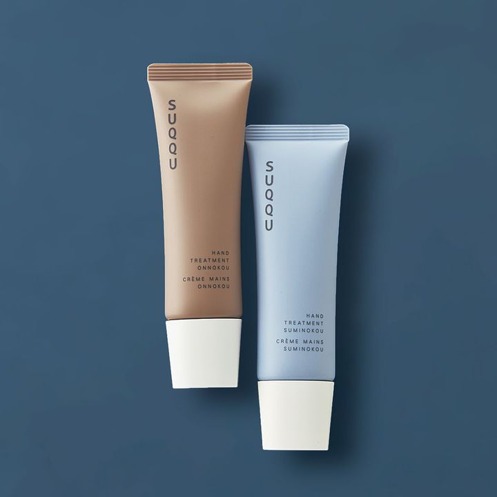 乾燥が進みがちな手肌をしっとりと保湿しながらも、塗布後すぐにデスクワークを可能にする使いやすさ。左:穏の香 右:澄の香 各¥3,850(SUQQU)