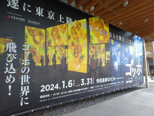 品川・天王洲アイルの寺田倉庫G1ビルで開催中のツアー型没入体験展覧会「ゴッホ・アライブ 東京展」。世界各地で開催され、延べ900万人以上を動員しています。日本は神戸と名古屋に続き東京が記念すべき100都市目となりました。ゴッホといえば、誰もが一度は目にしたことのある「ひまわり」や「星月夜」などが有名ですね。今回、1/11に行われた内覧会に行ってきました。