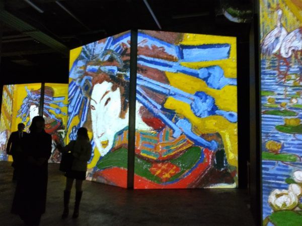こんな「和」の世界も! 同展覧会では、ゴッホが描いた930以上の絵のほとんどが紹介されています。オランダ時代から華やかなパリ、アルルへとそれぞれの時代の代表作が時系列で投影され、画家としてのストーリーを見せてくれます。臨場感あふれるダイナミックな映像、映像に合わせて選りすぐられた映画館レベルの音響のクラシック音楽、さらにゴッホゆかりのフランス田園地方をイメージさせるアロマの香り…。それらが空間いっぱいに広がって五感を刺激します。 五感に訴える展示会という触れ込み通り、芸術に疎い私もすっかり“没入”してしまいました。むしろ初心者のほうが“没入”してしまうかもしれません。もちろん、「映え」るフォトロケーションも!