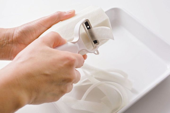 大根をピーラーで薄くスライスすることで、しゃっきりとした歯ざわりをのこしたまま、短時間でも味がしみしみに。ひらひらとした見た目もかわいい、今が旬の大根をたっぷり味わえるレシピです!