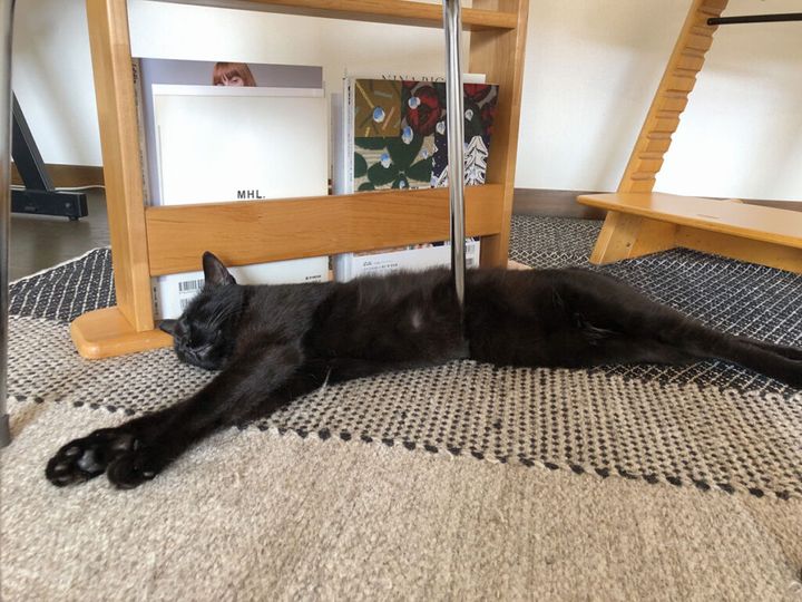 この寝方、気持ちいいんだよね〜。脇腹が伸びて気持ちいいから、みんなもやってみて!