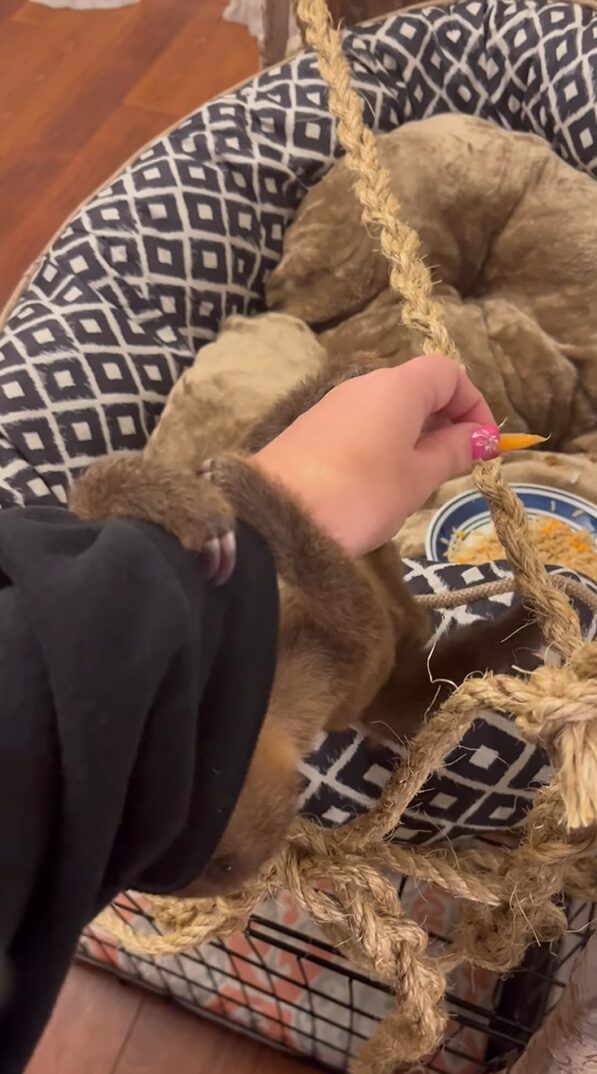 3. かわいすぎる甘えん坊。ナマケモノの赤ちゃんにおやつを差し出したら・・、今はかまってもらいたかった!?【アメリカ・動画】