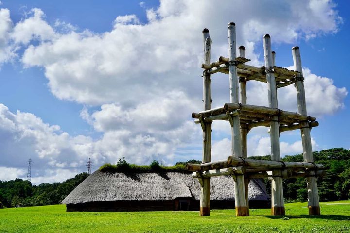 また、1992年に始まった発掘調査により、縄文時代前期~中期の大規模な集落跡が見つかった「三内丸山遺跡」も必見です。多数の竪穴建物跡や掘立柱建物跡のほか、盛土、お墓、多量の土器や石器なども出土。ここは縄文の丘三内丸山まほろばパーク内にあり、縄文時代の「ムラ」を体験できます。