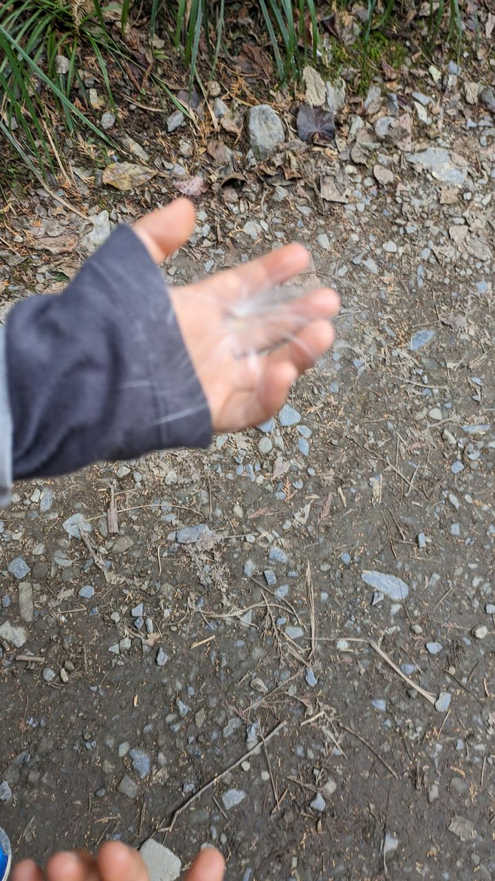 登る途中に謎の浮遊物、「ケサランパサラン」を発見。普段見慣れない植物や生き物に出会えることも登山ならではの貴重な体験です。