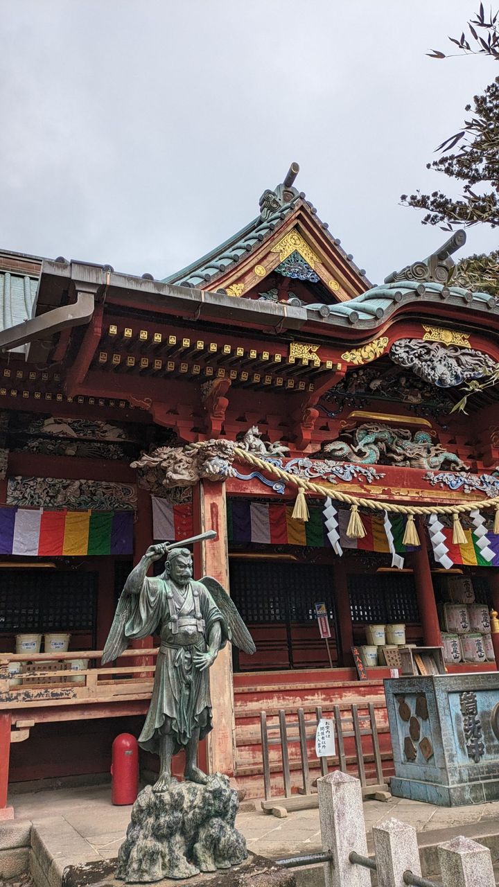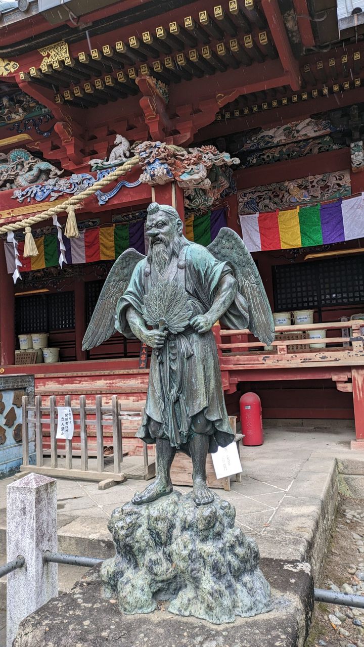 薬王院には天狗の下駄が飾られていました。子どもたちも楽しそうに見ていました。
