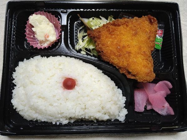 アジフライ弁当も注文。大きなアジフライが入っています。