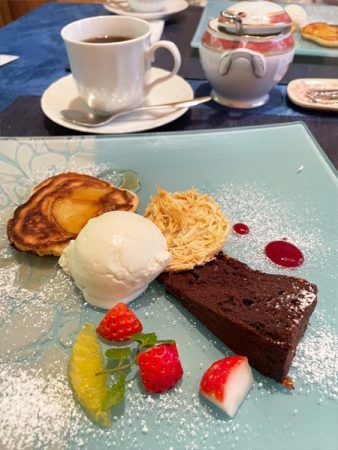 そして、最後はデザートプレート。ホットケーキ・ガトーショコラ・アイスはココナッツアイスでした。すでにお腹がいっぱいだけど、やはりデザートは別腹ですね!
