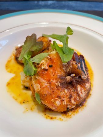 そして、エビ好きの私のハートを掴んだ一品がこちら。「エビのエピス焼き レモンのリゾット添え」。レモンを発酵させた塩レモンが使われていて、エスニックな風味とレモンの爽やかさがたまりません。
