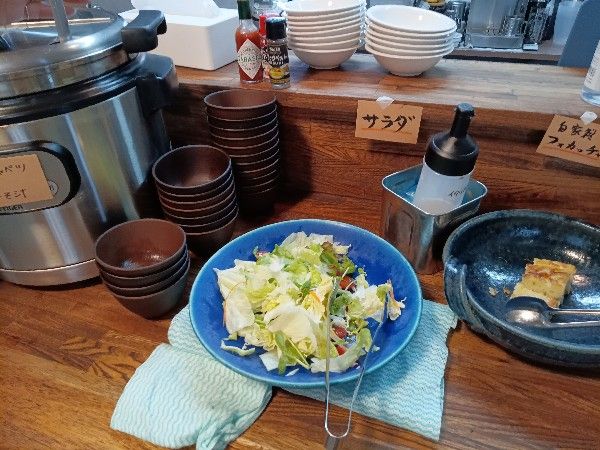 サラダ・スープ・フォカッチャ・お茶はセルフです。