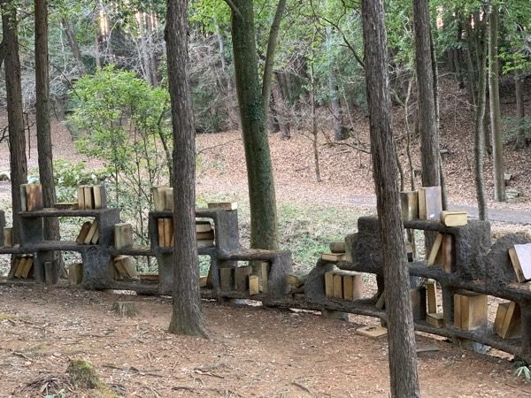 「発掘された古文書」 木立ちの中に突如現れる本棚。ジブリ作品を見るときのようなワクワク感。想像力がかき立てられます。