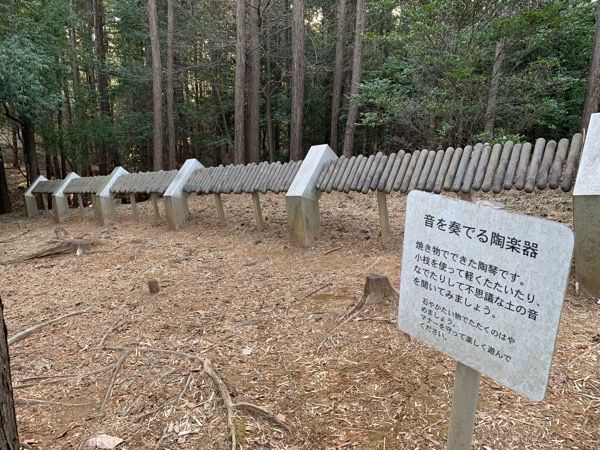 自然の地形を利用してヒノキの森の中に陶造形作家の作品を配置したこのエリアは、森の中で陶芸作品を楽しめるという全国でも珍しいコンセプトで設計されているそうです。 遊歩道に沿って様々なオブジェが配置されていて、見るだけでなく触れて楽しむことができます。