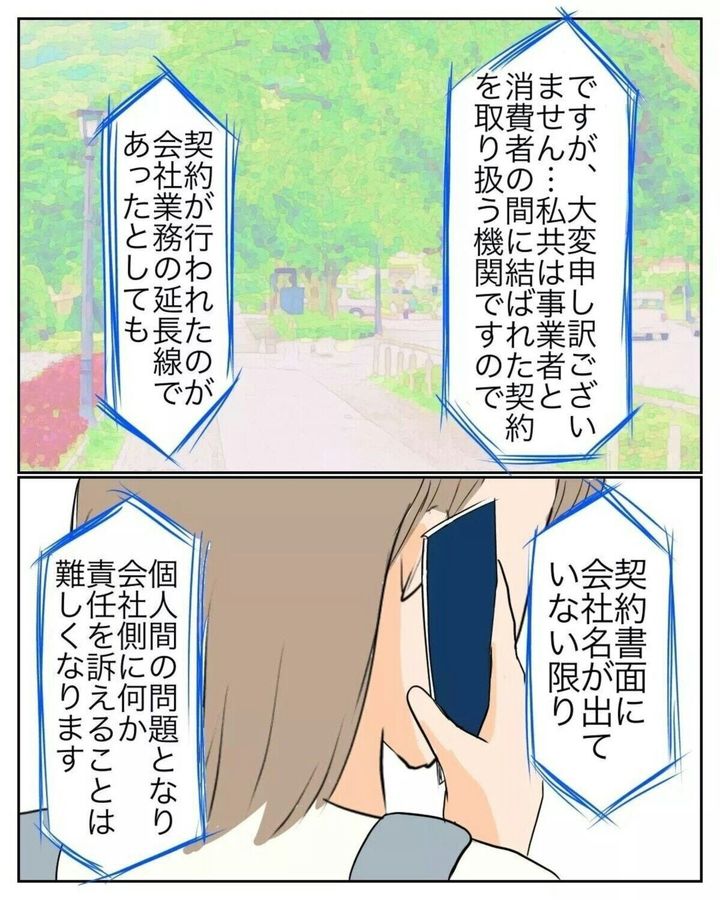 絶望の淵に立たされて、すがるように警察、弁護士、そして消費者センターに頼ります。しかしどこに助けを求めても、マキが安心できるような回答をしてくれたところはありませんでした。まるで騙された方が悪いとでも言われているかのようです…。