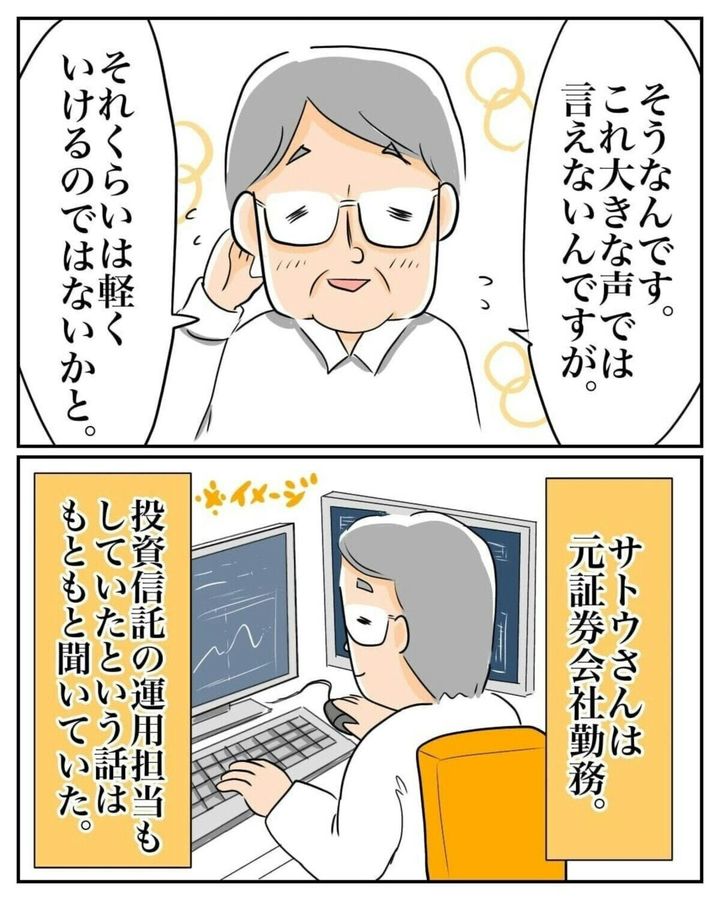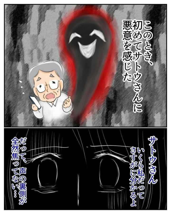 投資信託の話を信じ、信頼していたサトウさんに100万円を渡してしまったマキ。しかし、そのお金をだまし取られてしまったと気が付きます。信頼していたからこそ、強いショックを受けるマキ。事態が発覚したとき、はじめてサトウさんの悪意を感じたと言います。