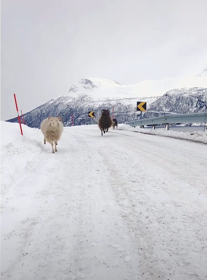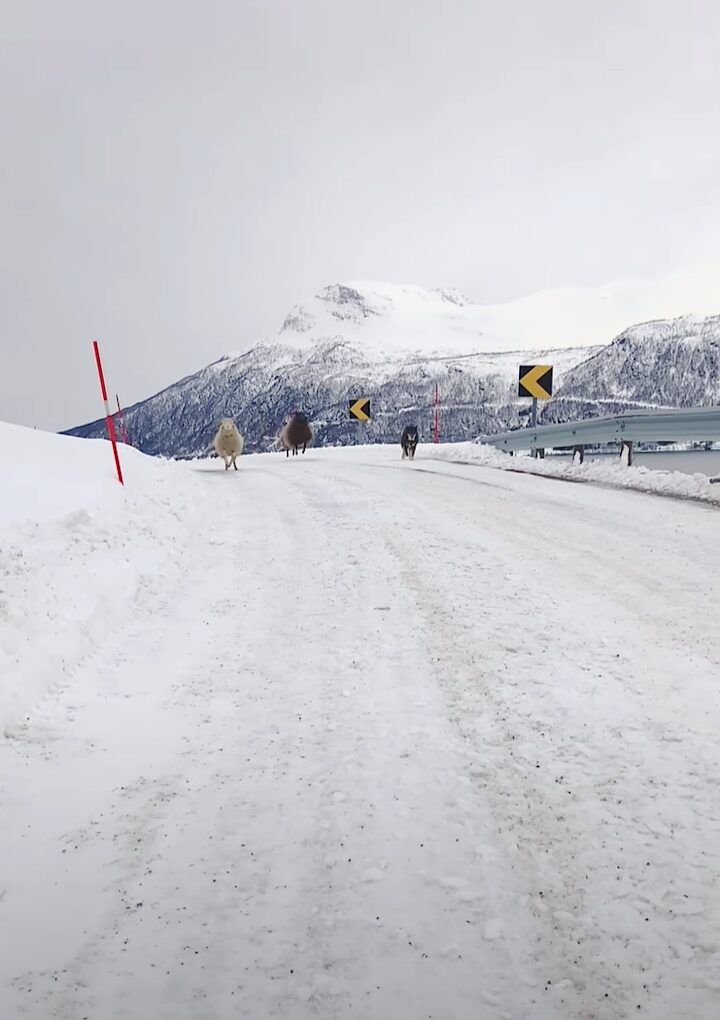 今回の動画が撮影されたのは、ノルウェー北部にあるラヴァンゲンの山道。 それは雪の降るある日のことでした。