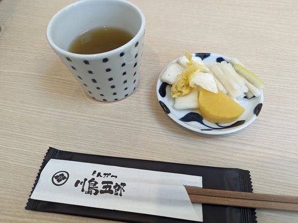 席に着くとお茶とお漬物が最初に出されました。 お漬物もサービスとして出してもらえるなんて嬉しいサービス♪