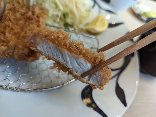 肉厚なとんかつにテンション上がってしまいます。 岩手県で育てられた「岩中豚(いわちゅうぶた)」というブランド豚を使ったこだわりのとんかつ。 サクサクな衣に包まれたお肉は柔らかく臭みなどもなく脂には甘みが感じられて美味しい♪