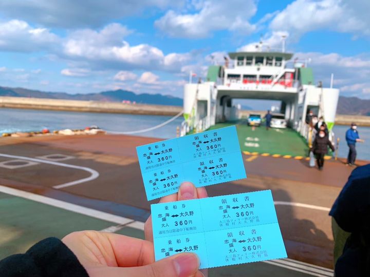 フェリーには、竹原市の忠海港から乗船します。乗船時間は約15分。