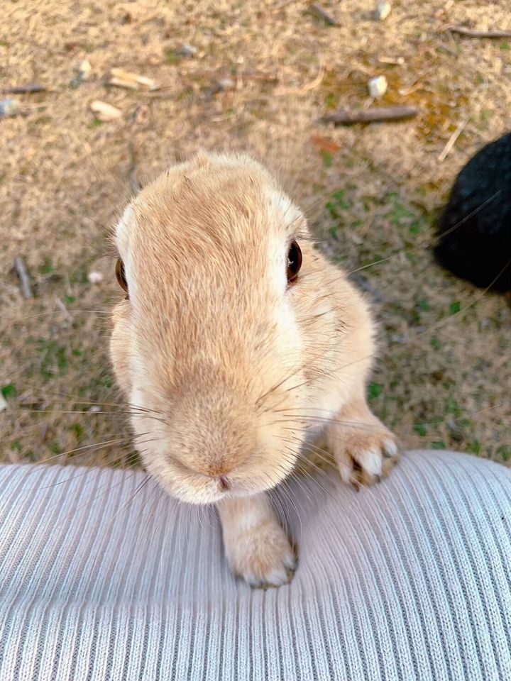 【降り立った瞬間、うさぎの大歓迎を受ける】