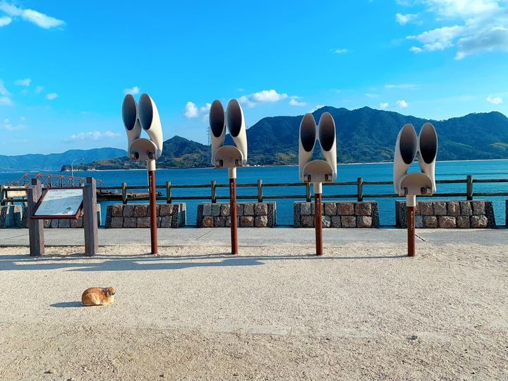 大久野島で一番人気の“映えスポット”は、ズバリ!「ウサギの耳集音機」です!
