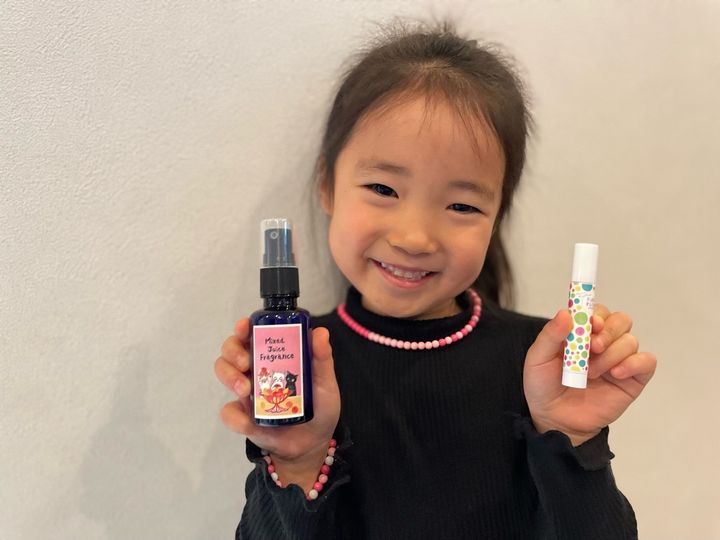 やさしいフレグランス:ピンク色が好きなので猫ラベルの「ミックスジュース」の香りを選択。香りの持続性はありませんが、シュッと自分でつけて優しい香りがするだけでも子どもには満足感をたっぷり与えることができるなと感じました。