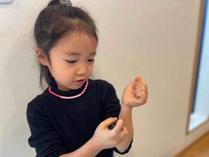 登園の髪型は「ここをポニーテールにして、三つ編みがいい!」「今日はこのゴムで二つ結び!」と注文が多い朝を過ごす毎日♪