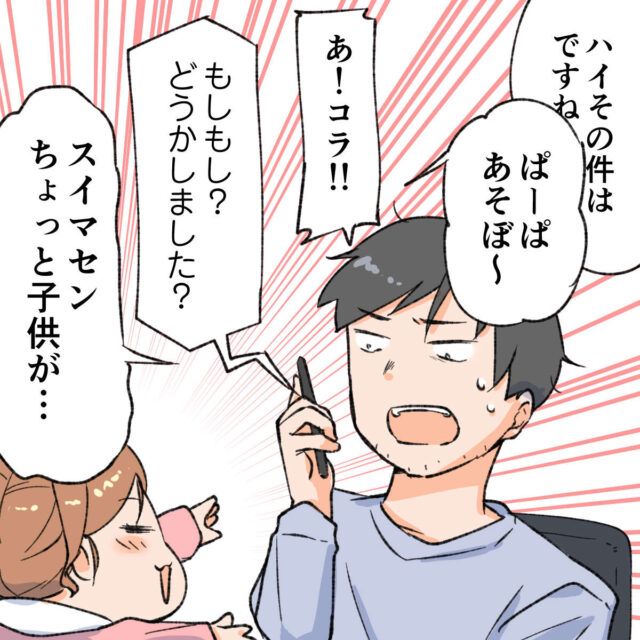 仕事の電話もおかまいなしに娘がじゃれて困りつつ、慌てて取引先の対応をするオレは・・