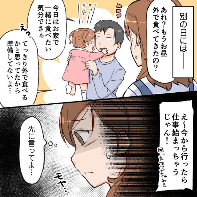 3. [2]お昼は外?家で食べる?それはオレの気分次第。振り回してることに気づかない。在宅ワークのオレ、妻の地雷を踏む|ママ広場マンガ