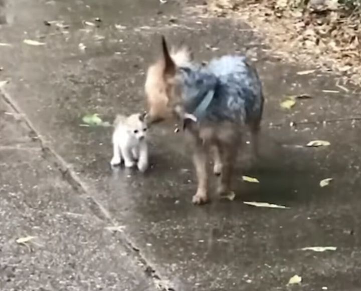 濡れている子猫さんを助けなきゃと思ったのかな。