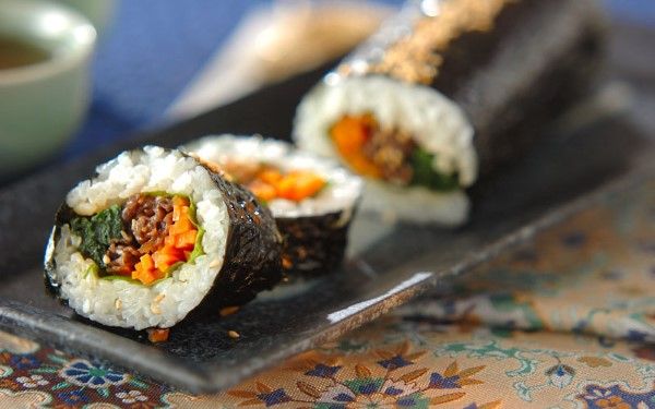 韓国風海苔巻き「キンパ」を節分に作るのもアリです。ごま油の香ばしい香りが食欲そそります。焼肉のタレなどを使ったしっかり目の味つけが子どもにも好評です。手軽な材料で作れるのもうれしいですね。