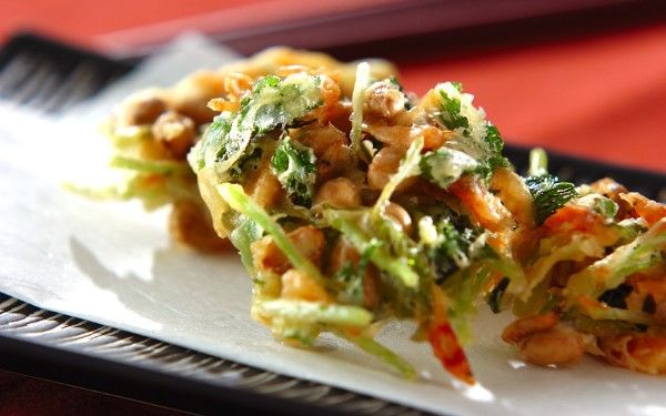 大豆がカリカリ食感で香ばしく、ペロリと完食できそうな一品です。大豆で手軽にタンパク質を補給できるのもポイント。桜エビや三つ葉の彩りも美しく、一足早く春らしさが感じられますね。