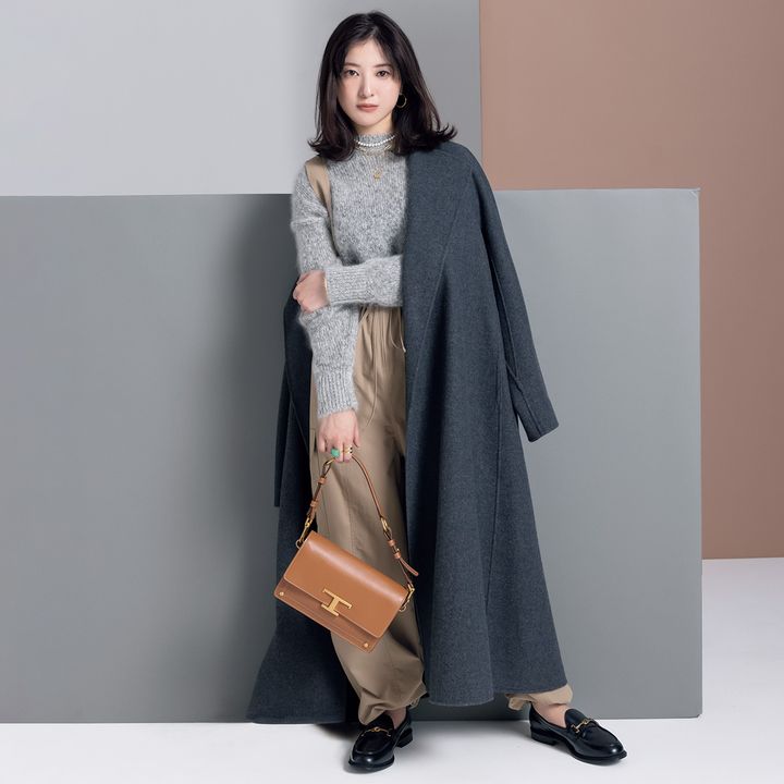 【GRAY×BEIGE】コートとバッグまで、2色でまとめて