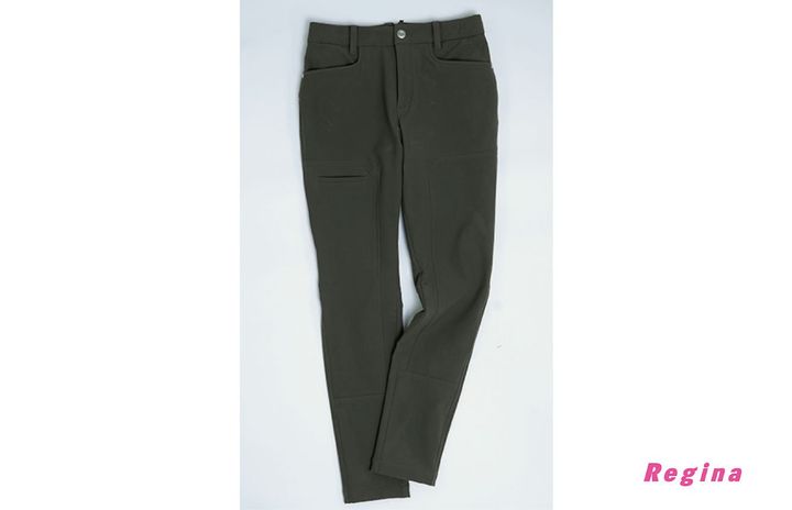 スマートな装いのために保温性と美シルエットを両立した裏起毛のスリムパンツを厳選。右は窮屈感のない全方向ストレッチ生地。左は静電気防止効果のあるストレッチ生地です。