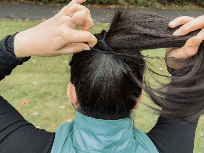 また、空気中の塵やホコリがなるべく髪につかないように、ヘアゴムやヘアピン、クリップなどがあれば、髪はまとめておくとよいでしょう。これもまたバッグに入れていてジャマになるものでもないので、ふだんから持ち歩くのもよいですし、デザイン性の高いヘアゴムなら、手首にブレスレットのようにつけておくのも、いざというときにおすすめです。