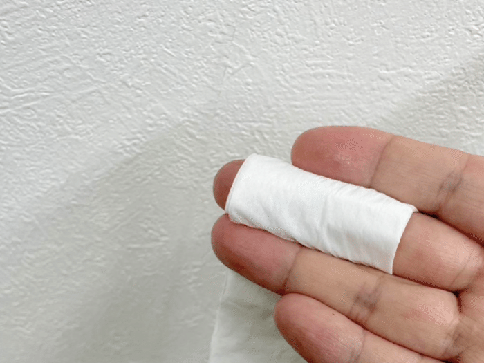 乾いたティッシュを使うときは、短冊状に折り、目もとの内側から外側へティッシュの面をスライドさせるように変えながら清拭(せいしき)していきます。