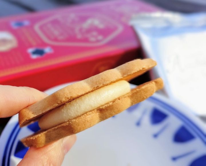 外側は厚めで内側が薄めのサブレなので、外側はサブレの香ばしさをメインに、内側は濃厚なバタークリームをと、1個で香ばしさ、ミルキーな甘み、甘塩ハーモニーを楽しめます!