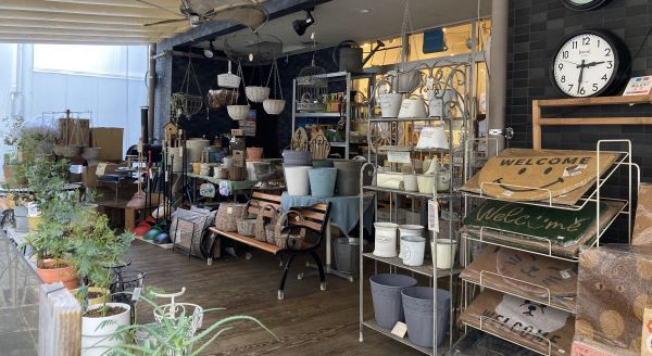 雑貨にインテリア、アンティークにガーデニングアイテムなど、様々な商品にワクワクして時間を忘れてしまいそうになる雑貨屋さん。プレゼント選びにもオススメしたいお店です。伺った際、丁度店内に入ってこられたお客さんも、「ここならありそう」と呟かれたほど魅力あるアイテムがあふれています。