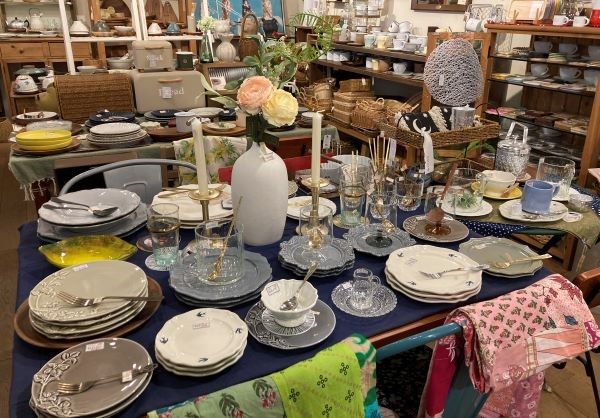 洋風なものやナチュラルなもの、ホーローのものなど様々な食器たち。テーブルにディスプレイされている食器もあることでサイズ感もわかりやすく、一緒に置かれていてるカトラリーとセットで欲しくなってしまいました。