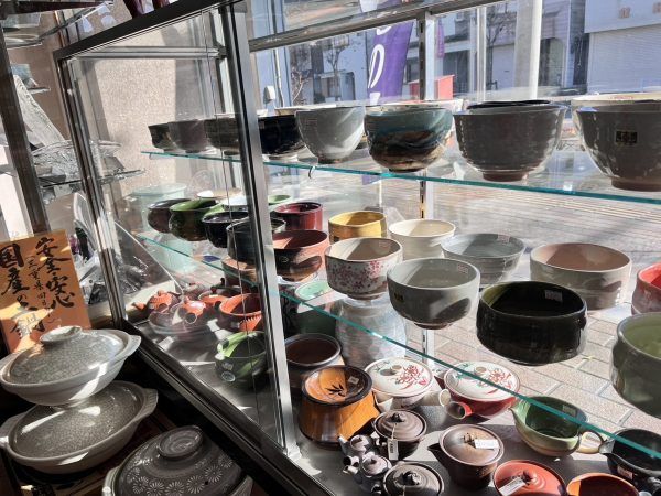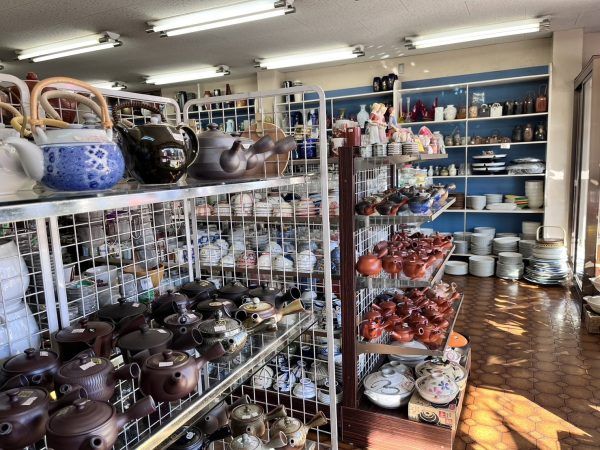 陶器のお店ですので、店内にはたくさんの陶器が陳列されています。急須の数もこのとおり。