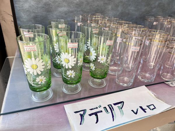 昭和レトロな食器が好きな私には、目の前に宝の山が現れたような感覚でした!かなり迷いましたが、この日はアデリアのグラスをひとつだけ連れて帰ってきました。
