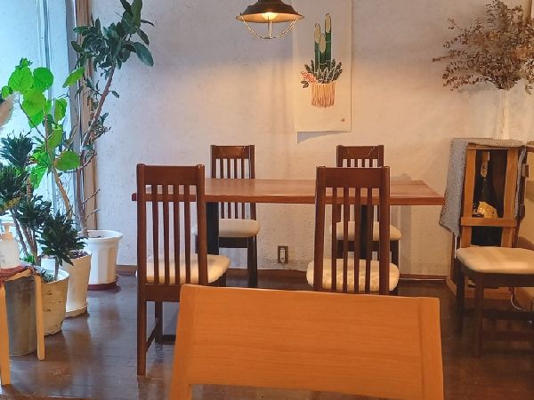 店内も落ち着いた照明でカフェのような雰囲気。 2名掛けテーブル4席、4~6名掛けテーブル1席、カウンター4~5席、お座敷もあって、とても広々としています。