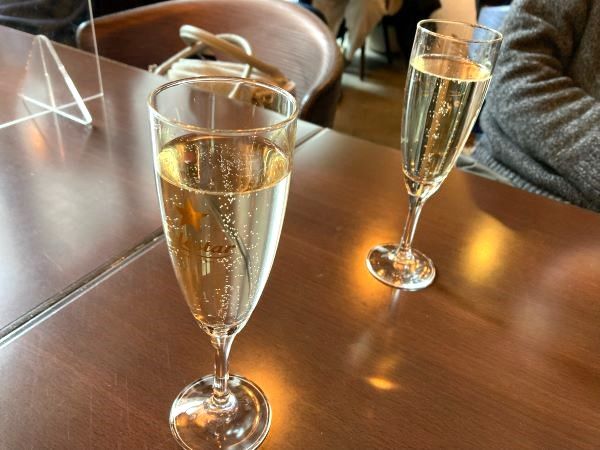 そしてドリンクはコーヒーやオレンジジュースなどのソフトドリンクだけではなく、なんとスパークリングワインや赤ワイン、白ワインも選べる~♪